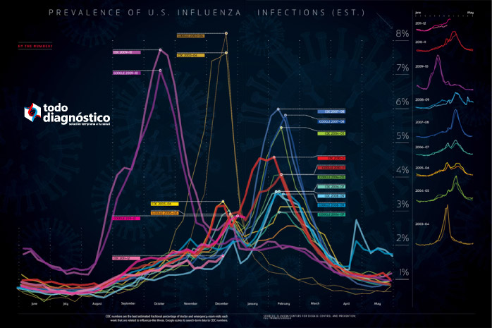 En 2008, un equipo de Google se dio cuenta de que los términos de búsqueda como “resfriado”, “influenza“, “gripe” y “cómo tratar la gripe” podrían usarse de manera confiable como indicadores de los niveles de gripe en una región determinada. Este descubrimiento se utilizó para lanzar Google Flu Trends, una herramienta que usa datos de búsqueda de Google para estimar la actividad de la gripe en todo el mundo.